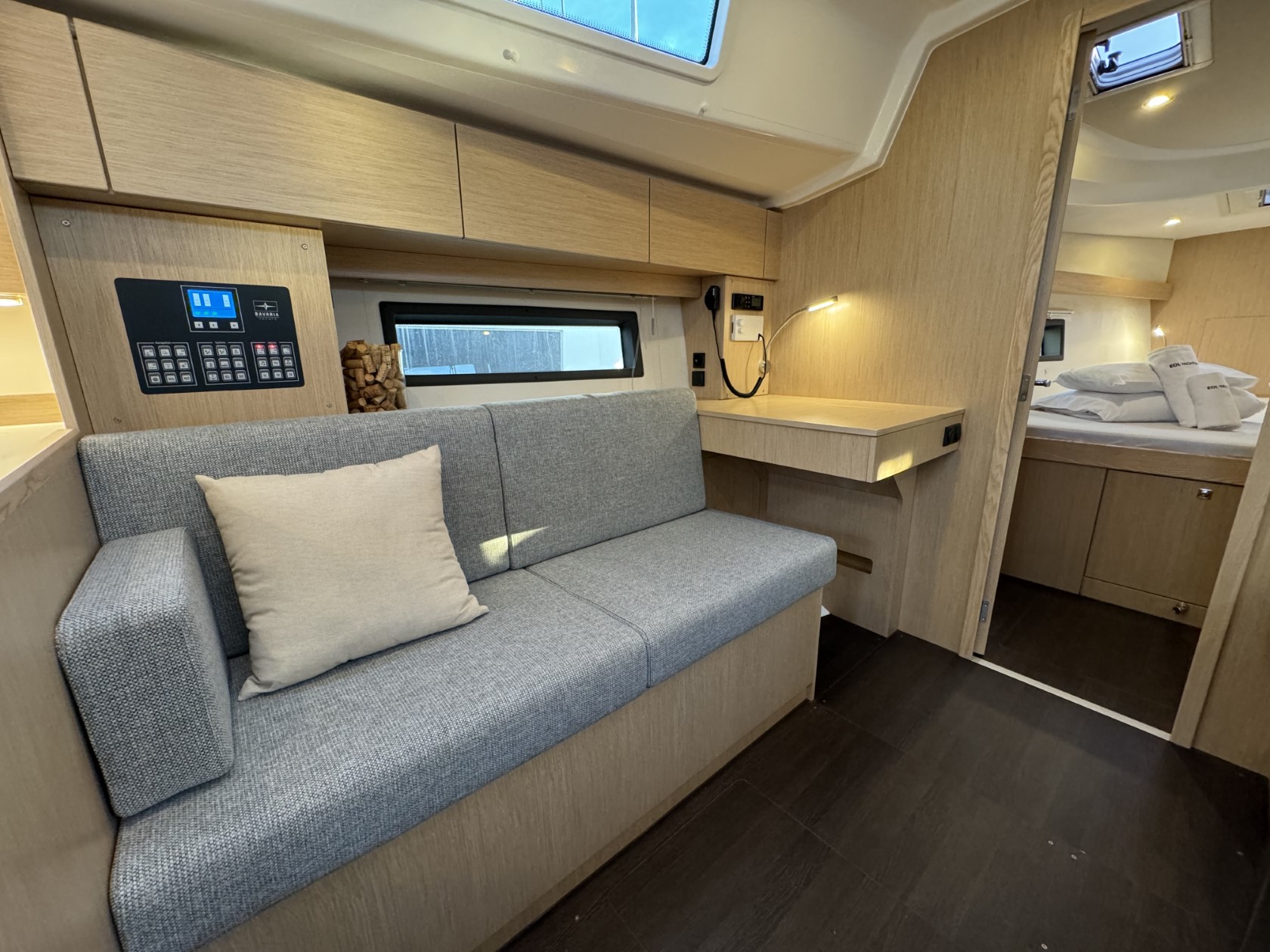 | Upholstery – Stone grey upholstery in saloon |