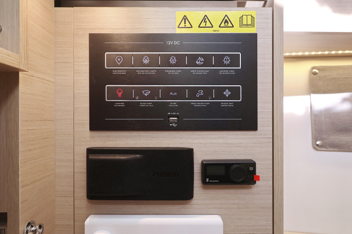 Dual USB socket: 1 in the saloon, 2 in the forward cabin, 1 in the aft cabins